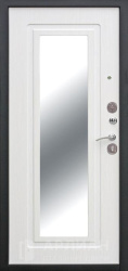Если важна функциональность, обратите внимание на входная дверь с зеркалом: она визуально расширяет узкий коридор. Варианты, где дверь с двух сторон выполнена в разной отделке (например, снаружи бетон светлый, а внутри дерево под беленый дуб или лиственница), позволяют подстроить дизайн под подъезд и квартиру одновременно. Интересно смотрятся решения «зеркалом панорама» во весь рост, а также сочетания, где зеркалом белый матовый внутри поддерживает светлый интерьер.