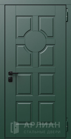 Дверь входная металлическая в зеленом цвете с ударопрочным полотном №1