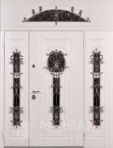 Парадная стальная дверь с боковой фрамугой и ковкой №20