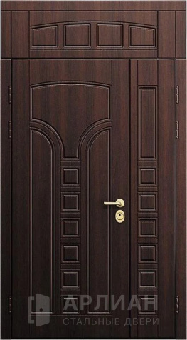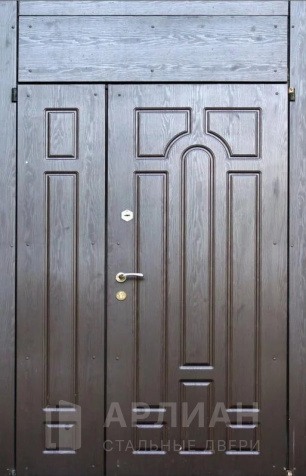Металлическая входная дверь в коттедж с верхней фрамугой №10