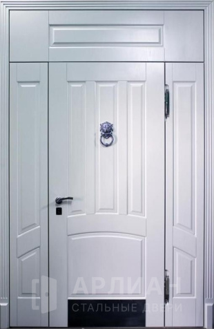 Морозостойкая белая входная дверь с фрамугой для дома №32