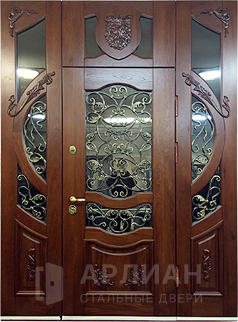 Фото «Трехстворчатая парадная входная дверь с терморазрывом и ковкой №34»