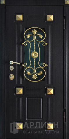 Кованая входная дверь в частный дом со стеклопакетом №4