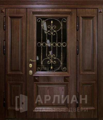 Входная дверь с ковкой и стеклом №414